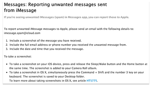 Theo như hướng dẫn của Apple thì muốn chặn tin nhắn spam iMessage của ai đó, bạn cần phải gửi những thông tin sau đây đến địa chỉ iMessage.spam@icloud.com: